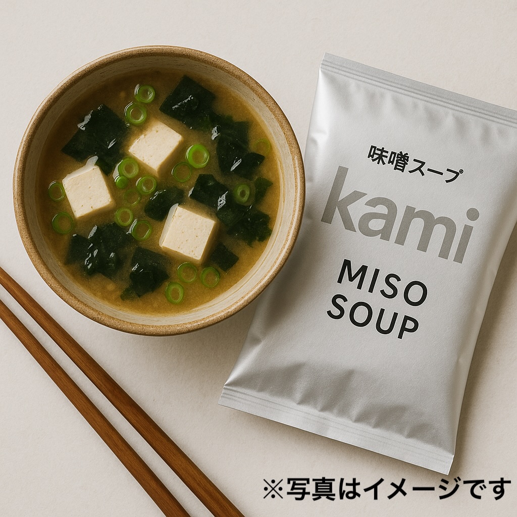 手作り発酵味噌、自然栽培野菜、そしてkamiを加えた、美味しく便利なフリーズドライお味噌汁。