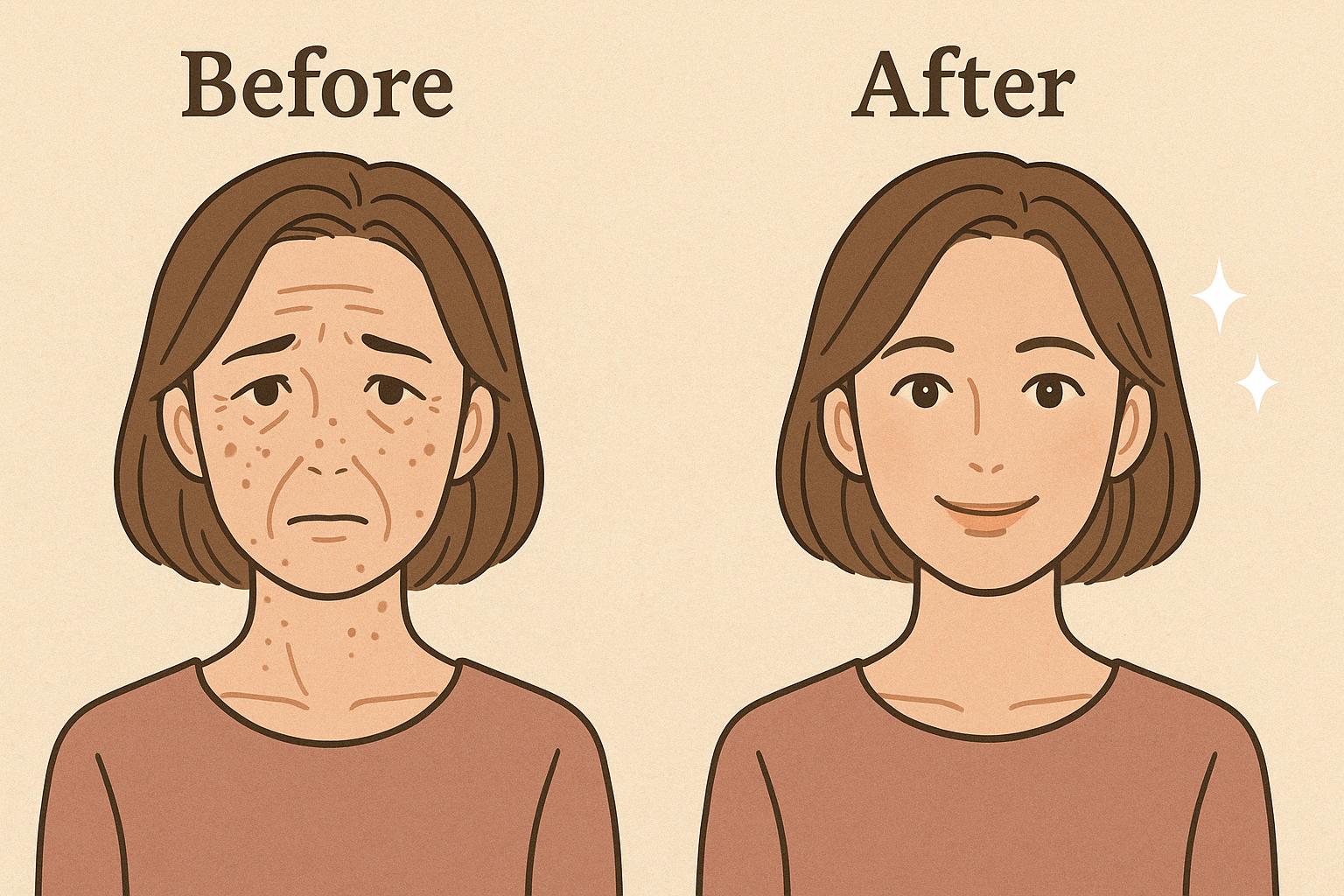 ✔ シミだけでなく、顔全体の“透明感”が戻った見た目年齢、マイナス5〜10歳は現実です。