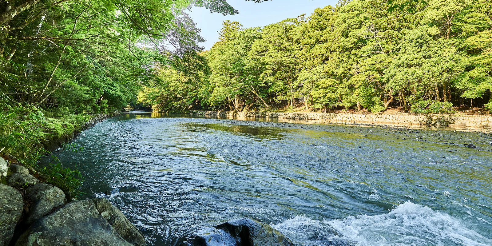 古来最高の特別格の宮とされ、日本国民の総氏神とされる伊勢神宮の神域に流れる五十鈴川の清流でした。